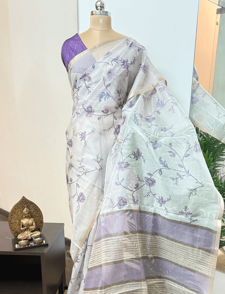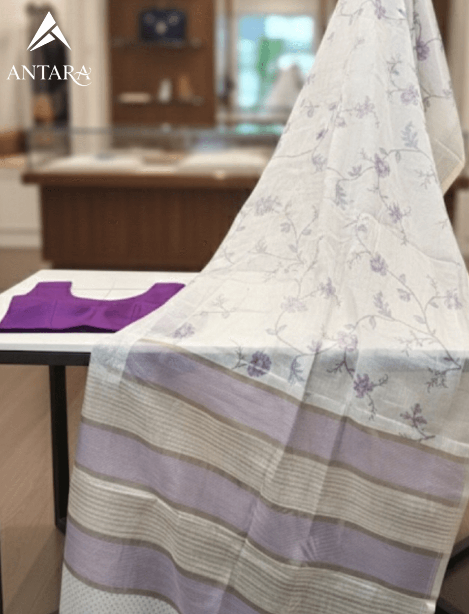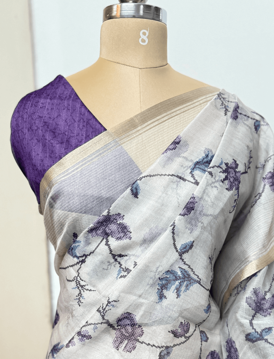 Be the first to review “Lavender Fancy Pixel Saree with Zari Border”