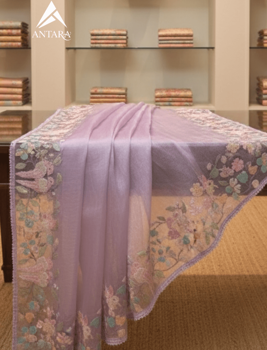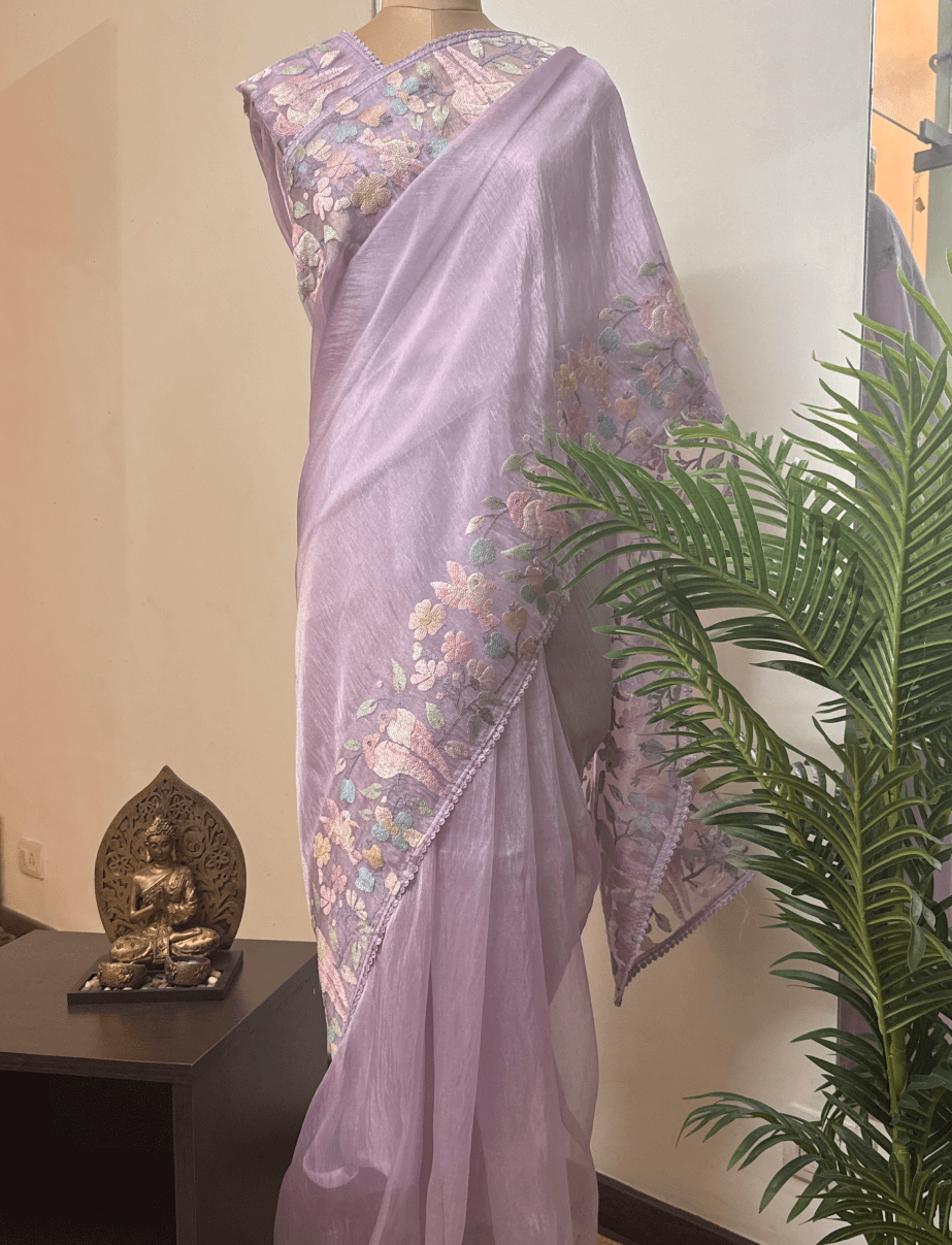 Lavender Fancy tissue Embroidered Bird Saree