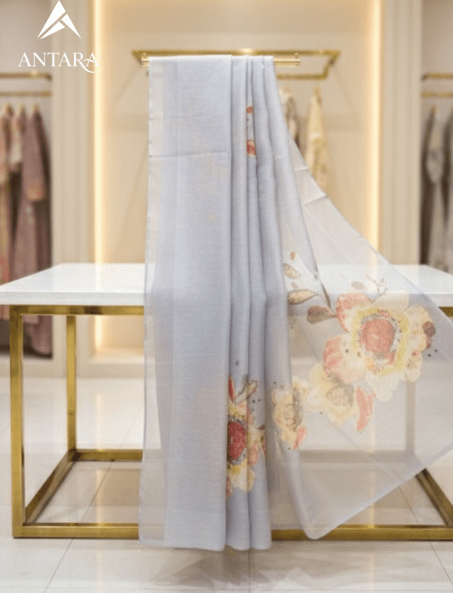Lavender Half And Half Modal Organza Saree