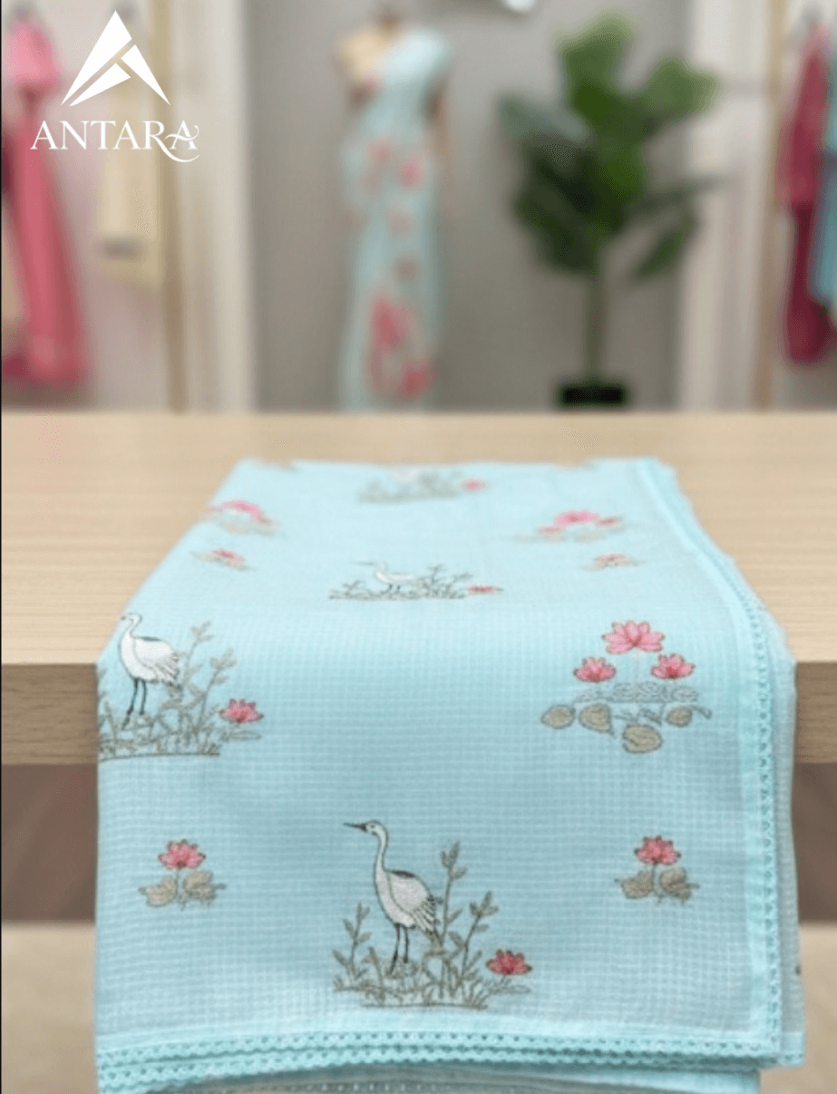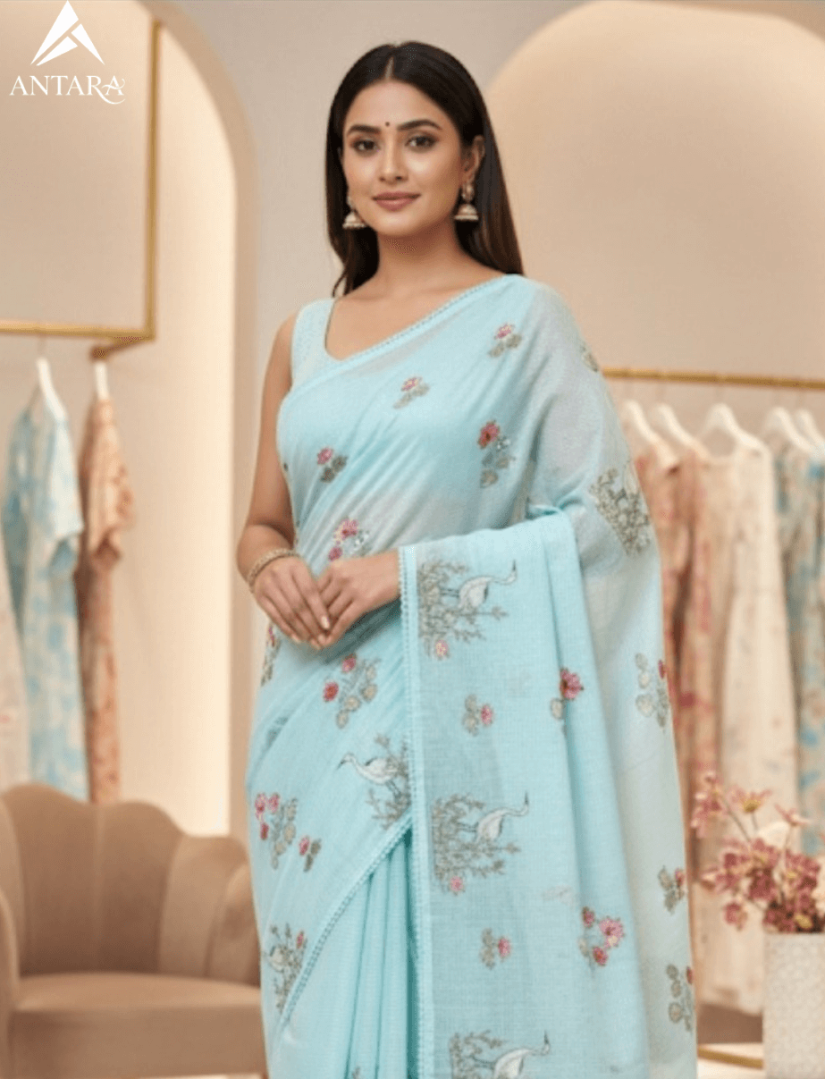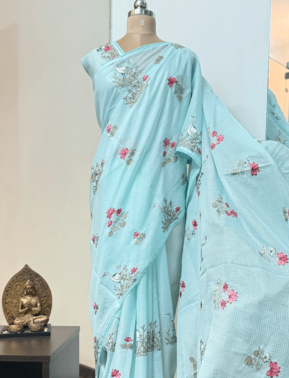 Be the first to review “Sky Blue Fancy Kota embroidery Saree”